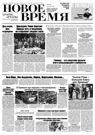Общественно- политическая газета “Новое Время” была создана в 1992-м году и за 20 лет своего существования сумела заслужить среди армянских читателей право называться лучшей русскоязычной газетой в РА. Помимо сугубо политических тем издание обращается также к вопросам социальным, научным, культурным. Внимание уделяется и проблемам армянской диаспоры…