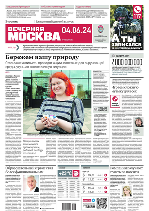 «Вечерняя Москва» — ежедневная российская вечерняя газета, старейшее из вечерних изданий в России, учрежденное в 1923 году. Выходит пять дней в неделю, кроме субботы и воскресенья. Отличается тем, что рассказывает о событиях еще не завершившегося дня. Оперативно освещает хронику и особенности жизни Москвы, охватывает все слои общества и большинство профессиональных и возрастных групп читателей.Издание представлено тремя выпусками – утренним ежедневным, вечерним (выходит три раза в неделю), еженедельным (выходит по четвергам).