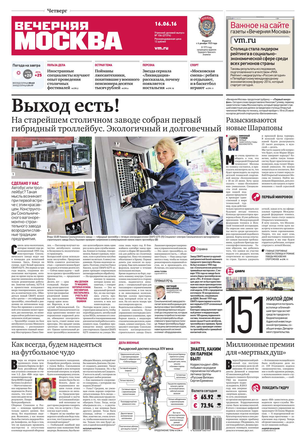 «Вечерняя Москва» — ежедневная российская вечерняя газета, старейшее из вечерних изданий в России, учрежденное в 1923 году. Выходит пять дней в неделю, кроме субботы и воскресенья. Отличается тем, что рассказывает о событиях еще не завершившегося дня. Оперативно освещает хронику и особенности жизни Москвы, охватывает все слои общества и большинство профессиональных и возрастных групп читателей.Издание представлено тремя выпусками – утренним ежедневным, вечерним (выходит три раза в неделю), еженедельным (выходит по четвергам).