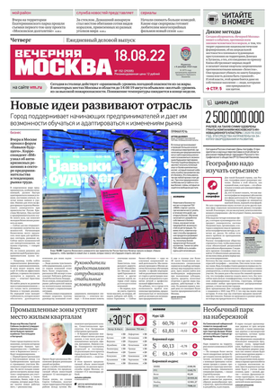 «Вечерняя Москва» — ежедневная российская вечерняя газета, старейшее из вечерних изданий в России, учрежденное в 1923 году. Выходит пять дней в неделю, кроме субботы и воскресенья. Отличается тем, что рассказывает о событиях еще не завершившегося дня. Оперативно освещает хронику и особенности жизни Москвы, охватывает все слои общества и большинство профессиональных и возрастных групп читателей.Издание представлено тремя выпусками – утренним ежедневным, вечерним (выходит три раза в неделю), еженедельным (выходит по четвергам).