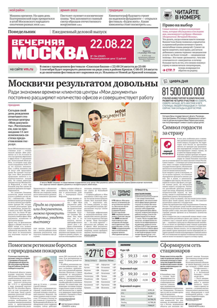 «Вечерняя Москва» — ежедневная российская вечерняя газета, старейшее из вечерних изданий в России, учрежденное в 1923 году. Выходит пять дней в неделю, кроме субботы и воскресенья. Отличается тем, что рассказывает о событиях еще не завершившегося дня. Оперативно освещает хронику и особенности жизни Москвы, охватывает все слои общества и большинство профессиональных и возрастных групп читателей.Издание представлено тремя выпусками – утренним ежедневным, вечерним (выходит три раза в неделю), еженедельным (выходит по четвергам).
