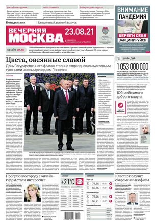 «Вечерняя Москва» — ежедневная российская вечерняя газета, старейшее из вечерних изданий в России, учрежденное в 1923 году. Выходит пять дней в неделю, кроме субботы и воскресенья. Отличается тем, что рассказывает о событиях еще не завершившегося дня. Оперативно освещает хронику и особенности жизни Москвы, охватывает все слои общества и большинство профессиональных и возрастных групп читателей.Издание представлено тремя выпусками – утренним ежедневным, вечерним (выходит три раза в неделю), еженедельным (выходит по четвергам).