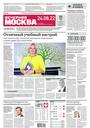 «Вечерняя Москва» — ежедневная российская вечерняя газета, старейшее из вечерних изданий в России, учрежденное в 1923 году. Выходит пять дней в неделю, кроме субботы и воскресенья. Отличается тем, что рассказывает о событиях еще не завершившегося дня. Оперативно освещает хронику и особенности жизни Москвы, охватывает все слои общества и большинство профессиональных и возрастных групп читателей.Издание представлено тремя выпусками – утренним ежедневным, вечерним (выходит три раза в неделю), еженедельным (выходит по четвергам).