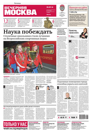 Еженедельный выпуск «Вечерней Москвы» — это значимые события недели, афиша города, новости из сферы отдыха и развлечений, телепрограмма с анонсами и комментариями, авторские колонки журналистов и авторитетные мнения экспертов, детская страничка, специальная рубрика «Золушка», интересные репортажи о необычных судьбах московских жителей, постоянные конкурсы и викторины.