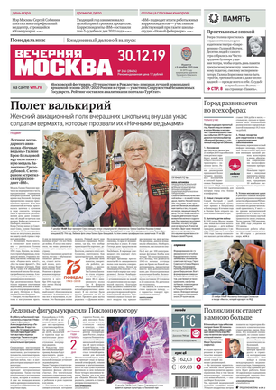 «Вечерняя Москва» — ежедневная российская вечерняя газета, старейшее из вечерних изданий в России, учрежденное в 1923 году. Выходит пять дней в неделю, кроме субботы и воскресенья. Отличается тем, что рассказывает о событиях еще не завершившегося дня. Оперативно освещает хронику и особенности жизни Москвы, охватывает все слои общества и большинство профессиональных и возрастных групп читателей.Издание представлено тремя выпусками – утренним ежедневным, вечерним (выходит три раза в неделю), еженедельным (выходит по четвергам).