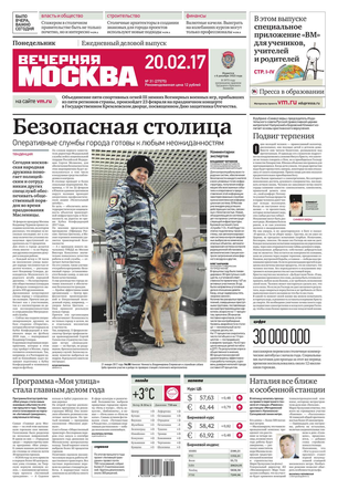 «Вечерняя Москва» — ежедневная российская вечерняя газета, старейшее из вечерних изданий в России, учрежденное в 1923 году. Выходит пять дней в неделю, кроме субботы и воскресенья. Отличается тем, что рассказывает о событиях еще не завершившегося дня. Оперативно освещает хронику и особенности жизни Москвы, охватывает все слои общества и большинство профессиональных и возрастных групп читателей.Издание представлено тремя выпусками – утренним ежедневным, вечерним (выходит три раза в неделю), еженедельным (выходит по четвергам).