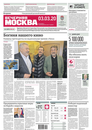 «Вечерняя Москва» — ежедневная российская вечерняя газета, старейшее из вечерних изданий в России, учрежденное в 1923 году. Выходит пять дней в неделю, кроме субботы и воскресенья. Отличается тем, что рассказывает о событиях еще не завершившегося дня. Оперативно освещает хронику и особенности жизни Москвы, охватывает все слои общества и большинство профессиональных и возрастных групп читателей.Издание представлено тремя выпусками – утренним ежедневным, вечерним (выходит три раза в неделю), еженедельным (выходит по четвергам).