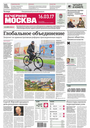 «Вечерняя Москва» — ежедневная российская вечерняя газета, старейшее из вечерних изданий в России, учрежденное в 1923 году. Выходит пять дней в неделю, кроме субботы и воскресенья. Отличается тем, что рассказывает о событиях еще не завершившегося дня. Оперативно освещает хронику и особенности жизни Москвы, охватывает все слои общества и большинство профессиональных и возрастных групп читателей.Издание представлено тремя выпусками – утренним ежедневным, вечерним (выходит три раза в неделю), еженедельным (выходит по четвергам).