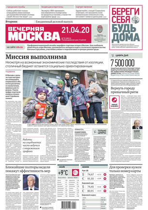 «Вечерняя Москва» — ежедневная российская вечерняя газета, старейшее из вечерних изданий в России, учрежденное в 1923 году. Выходит пять дней в неделю, кроме субботы и воскресенья. Отличается тем, что рассказывает о событиях еще не завершившегося дня. Оперативно освещает хронику и особенности жизни Москвы, охватывает все слои общества и большинство профессиональных и возрастных групп читателей.Издание представлено тремя выпусками – утренним ежедневным, вечерним (выходит три раза в неделю), еженедельным (выходит по четвергам).