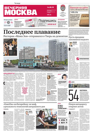 «Вечерняя Москва» — ежедневная российская вечерняя газета, старейшее из вечерних изданий в России, учрежденное в 1923 году. Выходит пять дней в неделю, кроме субботы и воскресенья. Отличается тем, что рассказывает о событиях еще не завершившегося дня. Оперативно освещает хронику и особенности жизни Москвы, охватывает все слои общества и большинство профессиональных и возрастных групп читателей.Издание представлено тремя выпусками – утренним ежедневным, вечерним (выходит три раза в неделю), еженедельным (выходит по четвергам).