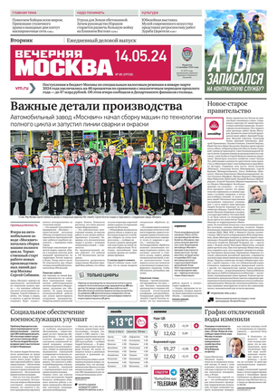 «Вечерняя Москва» — ежедневная российская вечерняя газета, старейшее из вечерних изданий в России, учрежденное в 1923 году. Выходит пять дней в неделю, кроме субботы и воскресенья. Отличается тем, что рассказывает о событиях еще не завершившегося дня. Оперативно освещает хронику и особенности жизни Москвы, охватывает все слои общества и большинство профессиональных и возрастных групп читателей.Издание представлено тремя выпусками – утренним ежедневным, вечерним (выходит три раза в неделю), еженедельным (выходит по четвергам).