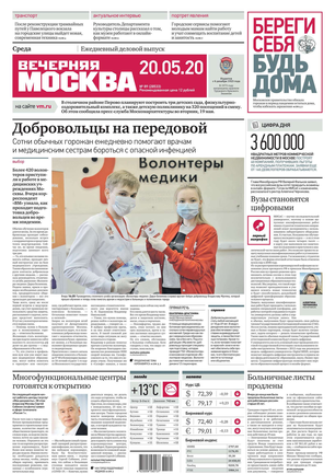 «Вечерняя Москва» — ежедневная российская вечерняя газета, старейшее из вечерних изданий в России, учрежденное в 1923 году. Выходит пять дней в неделю, кроме субботы и воскресенья. Отличается тем, что рассказывает о событиях еще не завершившегося дня. Оперативно освещает хронику и особенности жизни Москвы, охватывает все слои общества и большинство профессиональных и возрастных групп читателей.Издание представлено тремя выпусками – утренним ежедневным, вечерним (выходит три раза в неделю), еженедельным (выходит по четвергам).