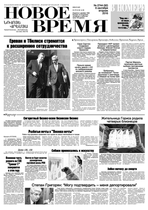 Общественно- политическая газета “Новое Время” была создана в 1992-м году и за 20 лет своего существования сумела заслужить среди армянских читателей право называться лучшей русскоязычной газетой в РА. Помимо сугубо политических тем издание обращается также к вопросам социальным, научным, культурным. Внимание уделяется и проблемам армянской диаспоры…